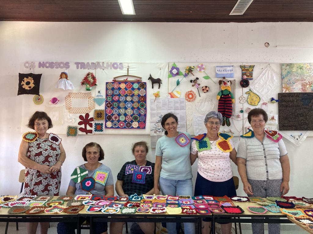 Depois de decidida a programação começámos a imaginar a decoração. Como podemos concretizar a ideia de colectivo numa decoração? Aqui surgiu a ideia de trabalhar as linhas e os nós e, concretamente, o crochet. Fomos falando com quem sabe fazer crochet e desafiando a fazer as decorações para a Festa do Futuro e, neste momento, temos as senhoras do Grupo de Bordados de Fontes, pessoas do Carvalhal, do Souto, algumas que, apesar de serem desta terra, vivem em Lisboa e outras que são mesmo de Lisboa. É mais uma vez o “passa palavra” a funcionar.