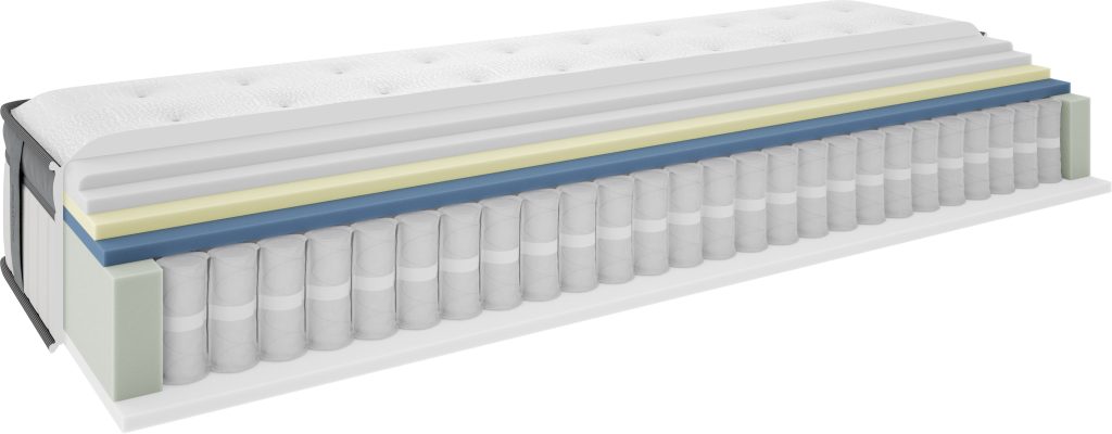 Já o modelo GOLD S110 é um colchão de molas, com 600 molas ensacadas, uma altura acima da média (29 cm) e um tecido com efeito refrescante. O seu acolchoamento de fibra hipoalergénica garante um descanso e conforto semelhantes a dormir numa cama de hotel de luxo. É reversível e oferece conforto de dois lados.