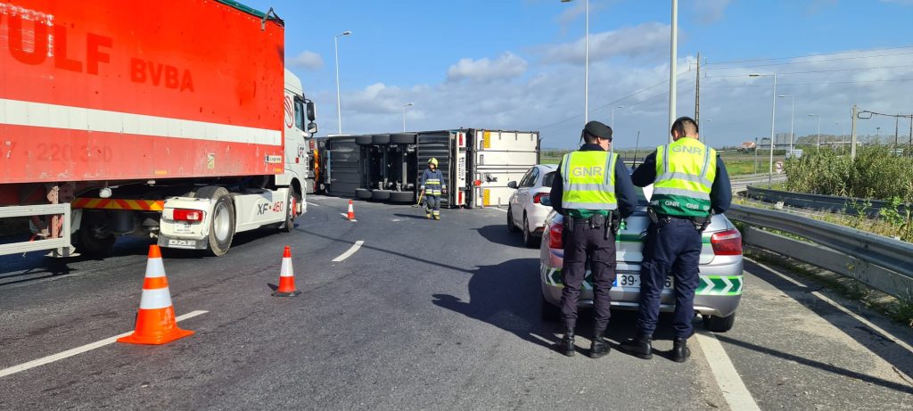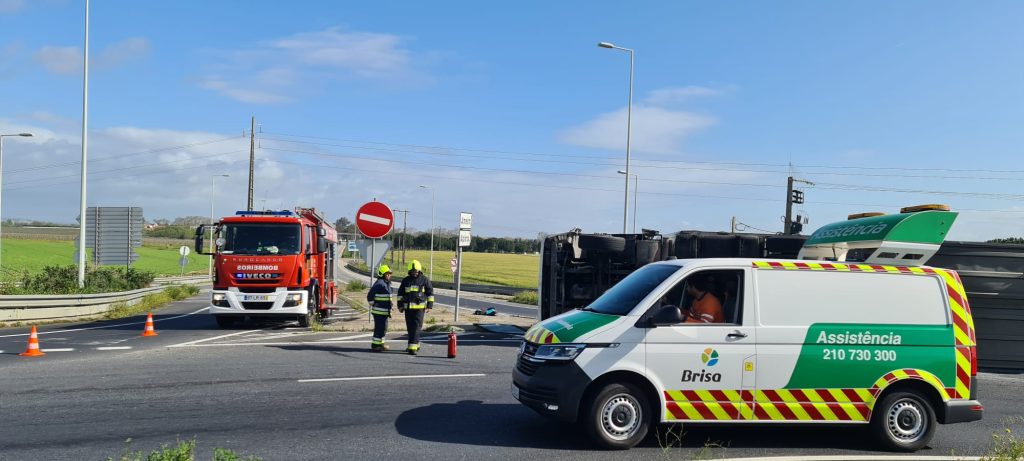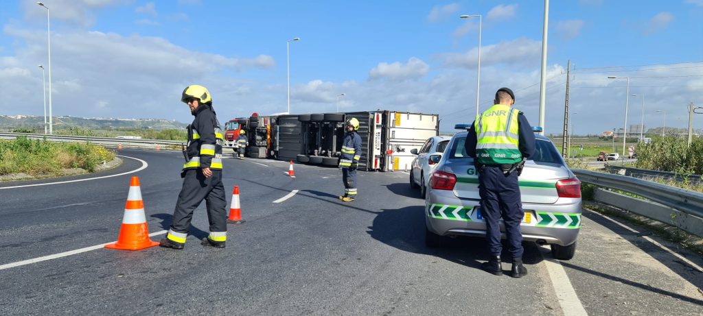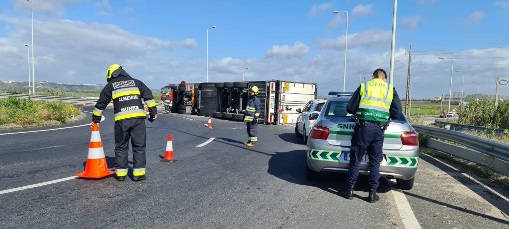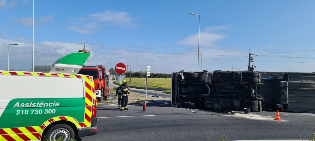 O alerta para o despiste do pesado, no caracol de acesso à Ponte, ocorreu cerca das 10:30, tendo sido despachados para o local 10 operacionais apoiados por 4 viaturas.