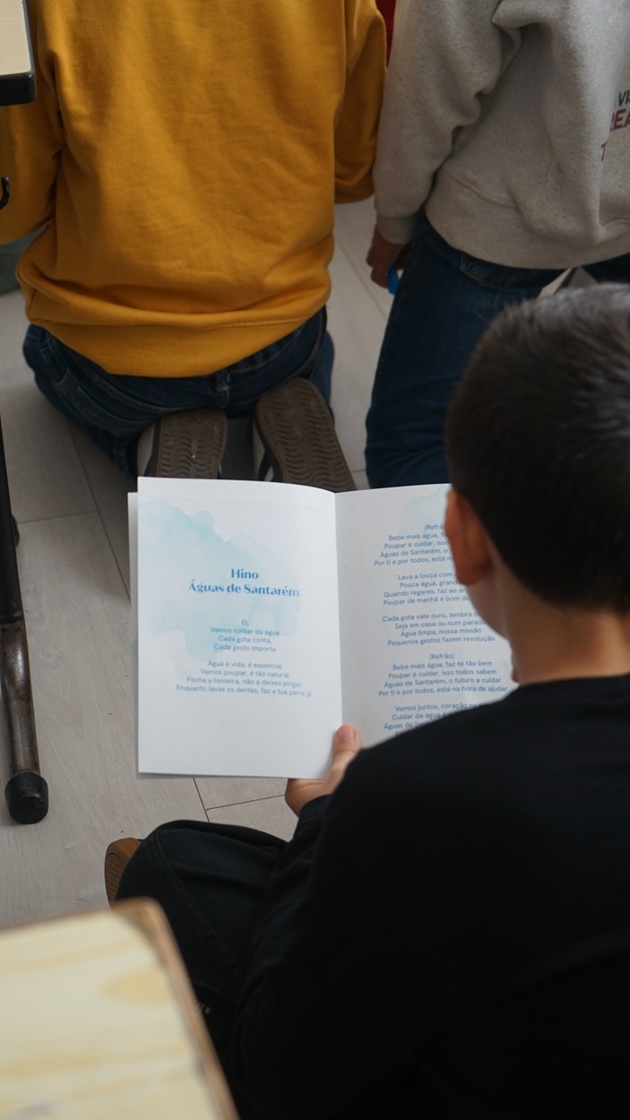 A ação contou com o reforço da importância de proteger este líquido elemento, por intermédio de uma conversa informal, aliada à distribuição de folhetos didáticos, pulseiras e ao visionamento de um vídeo com o hino das Águas de Santarém, disponível no Youtube. Paralelamente foi revelado aos mais novos que o “segredo da água” reside dentro de cada um de nós, através de cada gesto que contribui para a sua preservação.