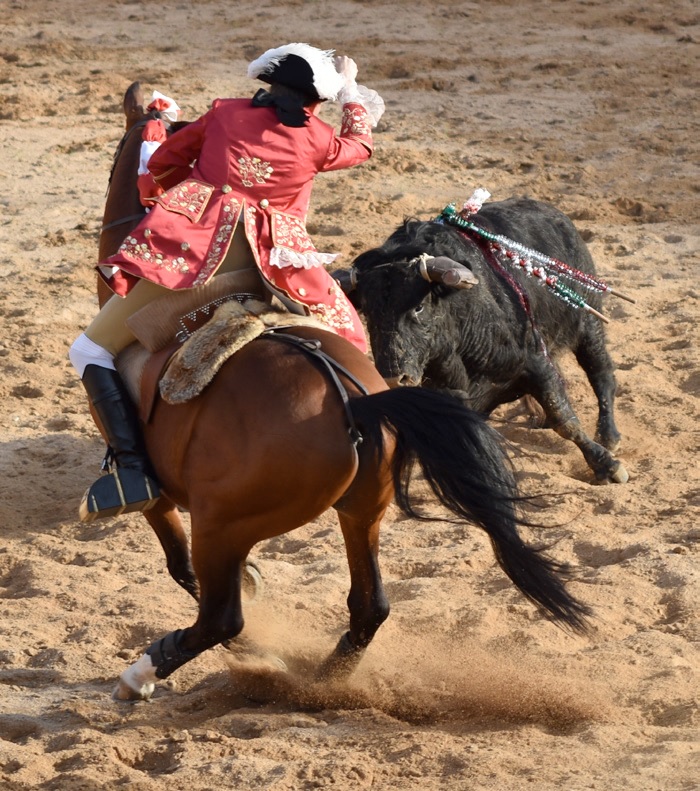Pablo Hermozo de Mendoza é a figura maior do rejoneio, dotado de uma intuição assinalável, senhor de uma técnica irrepreensível e está servido por uma “cuadra” de cavalos que apresenta solução para todos os desafios. Se admiramos a técnica e a expressão artística do ginete de Navarra, não poderemos deixar de aplaudir a doma das suas montadas, que exibem uma submissão e uma entrega notáveis. Com um cavaleiro desta categoria e com as montadas que o servem é difícil encontrar toiros que não sirvam aos seus intentos. Em todos os terrenos, a todas as distâncias e com todos os andamentos é evidente o domínio do toureiro sobre qualquer toiro, e bem sabemos como “tourear é dominar”. A elegância e o temple são dois atributos naturais na tauromaquia de Pablo, que não se esgota na colocação, criteriosa e acertada, da ferragem, valorizando sobremaneira a brega com que evidencia o seu mando e a sua arte. Almeirim rendeu-se ao labor desta grande figura do toureio.