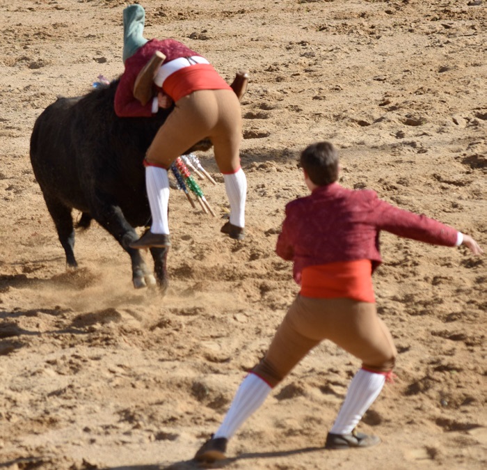 As pegas estavam confiadas a dois dos mais valorosos Grupos de Forcados – os Amadores de Montemor e o Aposento da Moita do Ribatejo. Ambos se desincumbiram galhardamente deste desafio. Pelos Amadores de Montemor, que consumaram todas as pegas ao primeiro intento, foram solistas Francisco Borges, que esteve perfeito em todos os momentos da sorte e com o Grupo a ajudar de forma coesa e eficaz, o mesmo sucedendo com Vasco Ponce e José Maria Carvalho; Pelos Amadores do Aposento da Moita foram solistas Tiago Valério, que consumou uma boa pega a aguentar uma viagem duríssima, superando todos os derrotes; André Silva, que foi desfeiteado numa duríssima primeira tentativa e que, depois de o toiro lhe passar ao lado, na segunda tentativa, apenas logrou consumar a pega à terceira, numa sorte em curto e com ajudas carregadas; e, finalmente, Diogo Gromicho, que se fechou com muita determinação e consumou a sua sorte ao primeiro intento.
