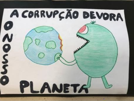O trabalho vencedor intitulado “A Corrupção Devora o Nosso Planeta” foi elaborado pelos alunos: Arina Odobesco, Diogo Conceição e Leonor Roseiro.