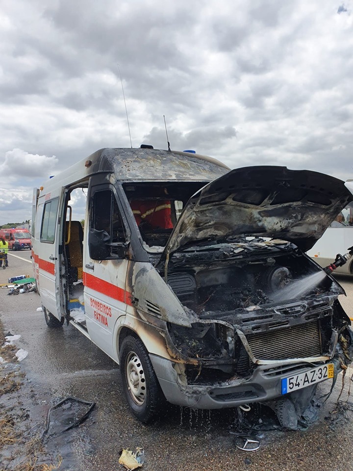 Uma ambulância dos Bombeiros Voluntários de Fátima ardeu hoje por completo na A23, junto ao nó de acesso à A1, não havendo feridos.
