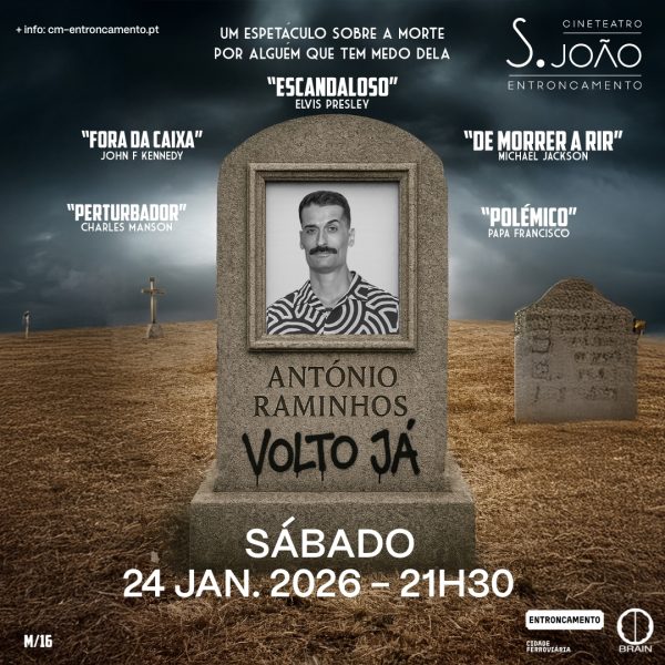O Cineteatro São João, localizado na cidade do Entroncamento, recebe no dia 24 de Janeiro (sábado), pelas 21h30, António Raminhos com o espetáculo de Stand Up Comedy “Volto já”, que promete transformar a indesejada visita da morte num momento de pura comédia.