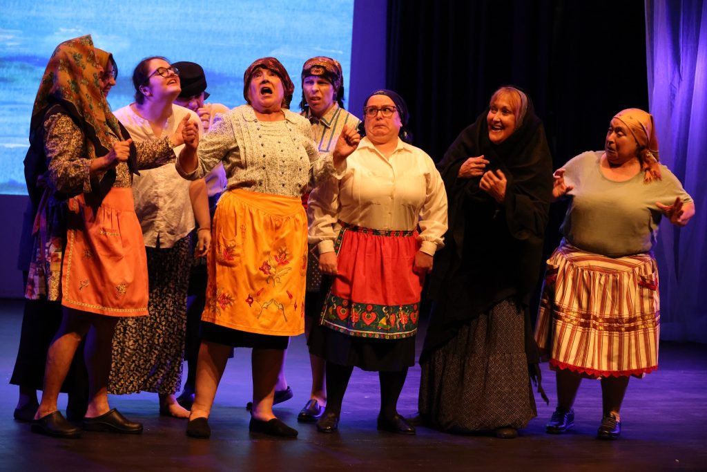 Todo o texto é representado por mulheres. A presença dos homens será apenas representada por objectos como botas, casacos, chapéus ou alfaias agrícolas.