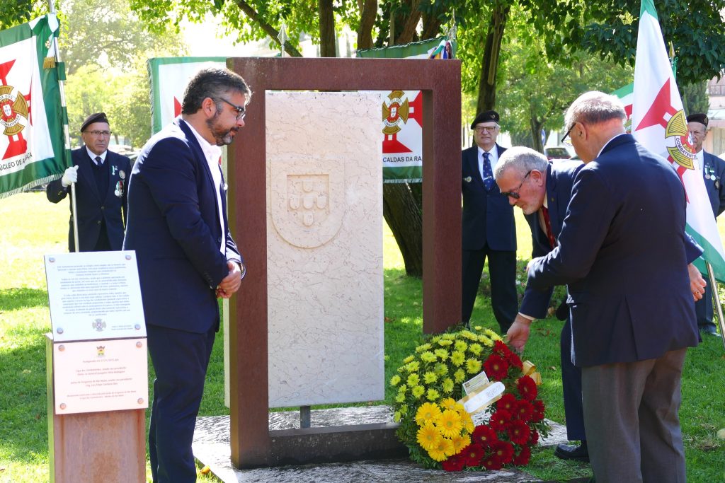 Foram depositadas duas coroas de flores, no novo monumento, em homenagem aos combatentes já falecidos.