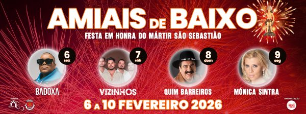 A Freguesia de Amiais de Baixo volta a realizar, como já é tradição, as Festas de Amiais de Baixo 2026, entre os dias 06 e 10 de Fevereiro, no recinto habitual da localidade.