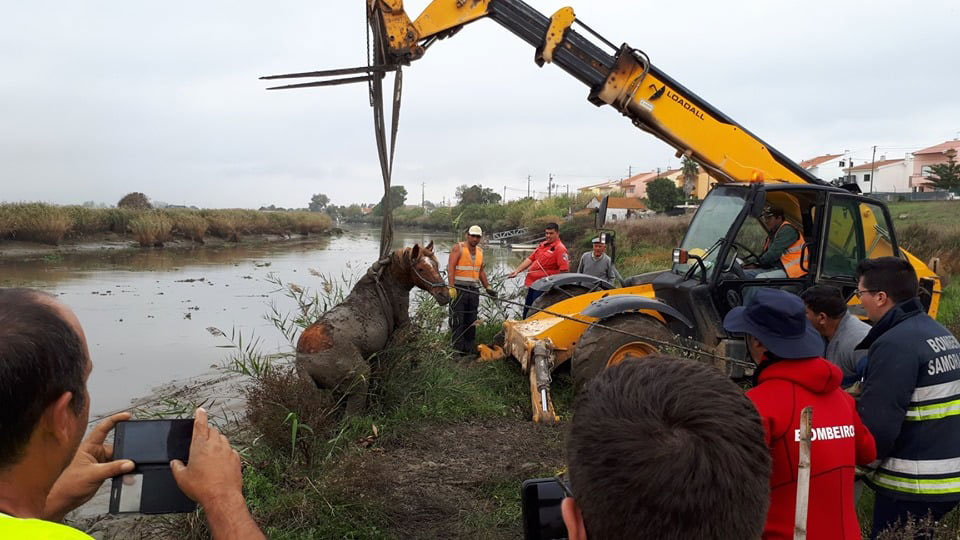 Um cavalo que caiu ao rio Almansor na manhã de quarta-feira, 30 de Outubro, foi salvo por mergulhadores dos Bombeiros Voluntários de Samora Correia e populares após ter sido arrastado pela corrente durante cerca de dois quilómetros até ficar atolado no lodo.
