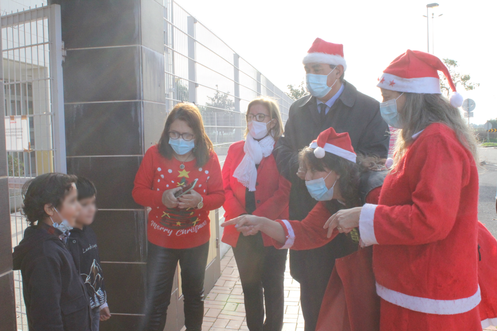 O Presidente da Câmara Municipal, Jorge Faria, a Vice-Presidente Ilda Joaquim, o Vereador Carlos Amaro e Vereadora Tília Nunes juntaram-se a uma representação dos Pais-Natal do Motoclube, nesta visita pelo Jardim de Infância Sophia de Mello Breyner, E. B. Zona Verde, E. B. António Gedeão, E.B. do Bonito, Centro Social Paroquial, Escola Rumo ao Futuro, Colégio dos Navegantes, Escola João de Deus e Infantário Encoprof, levando a magia do Natal para as cerca de 1400 crianças, destes estabelecimentos de ensino.