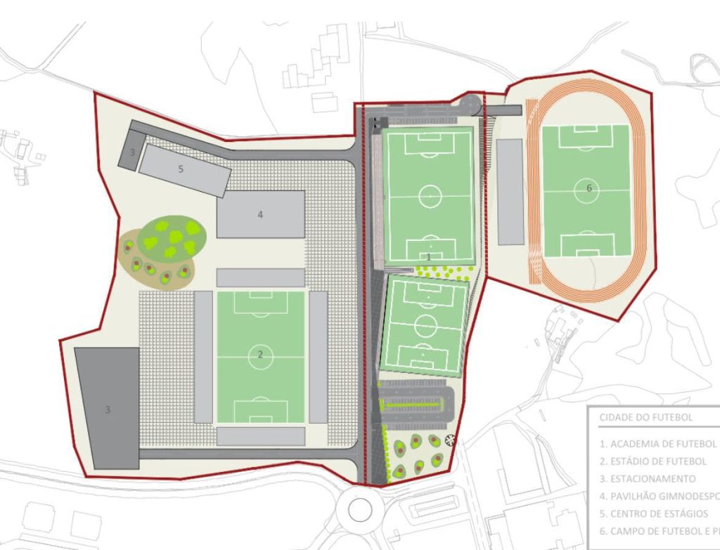 “Para o ano, em 2024, iniciar-se-á a construção da 1ª fase com a Academia de Futebol (zona central da planta, com bancadas, 2 campos de futebol)”, assegura João Leite.