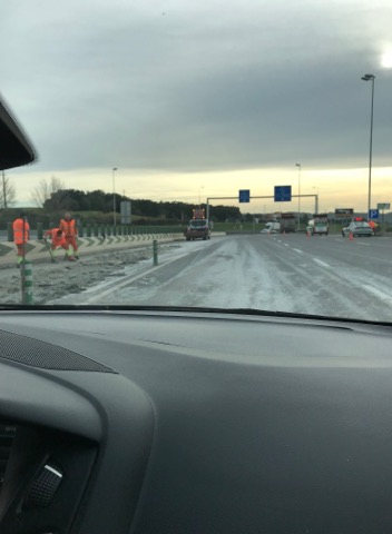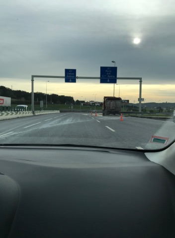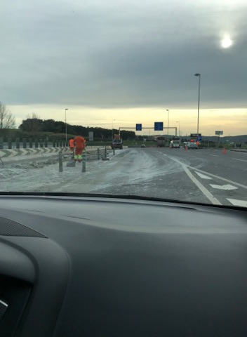 Um pesado de mercadorias perdeu parte da carga ao passar na Via Verde das portagens da A1, em Santarém, na tarde desta sexta-feira, 17 de Janeiro.