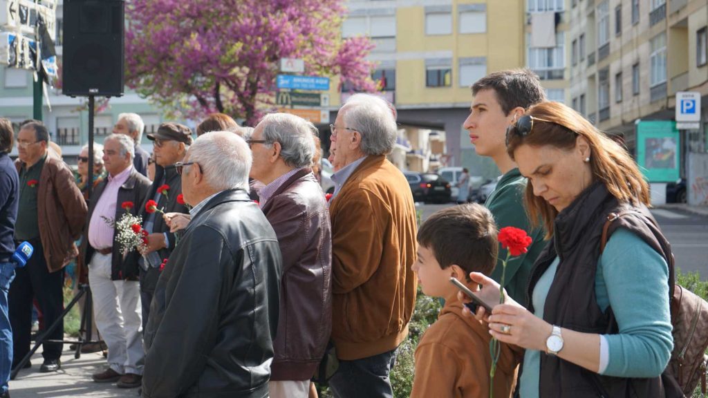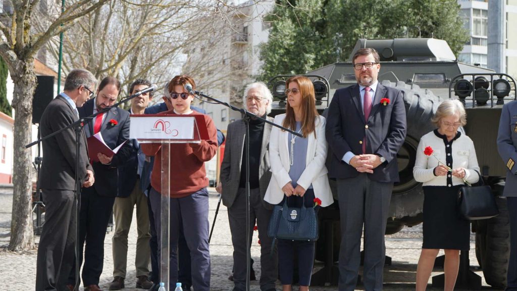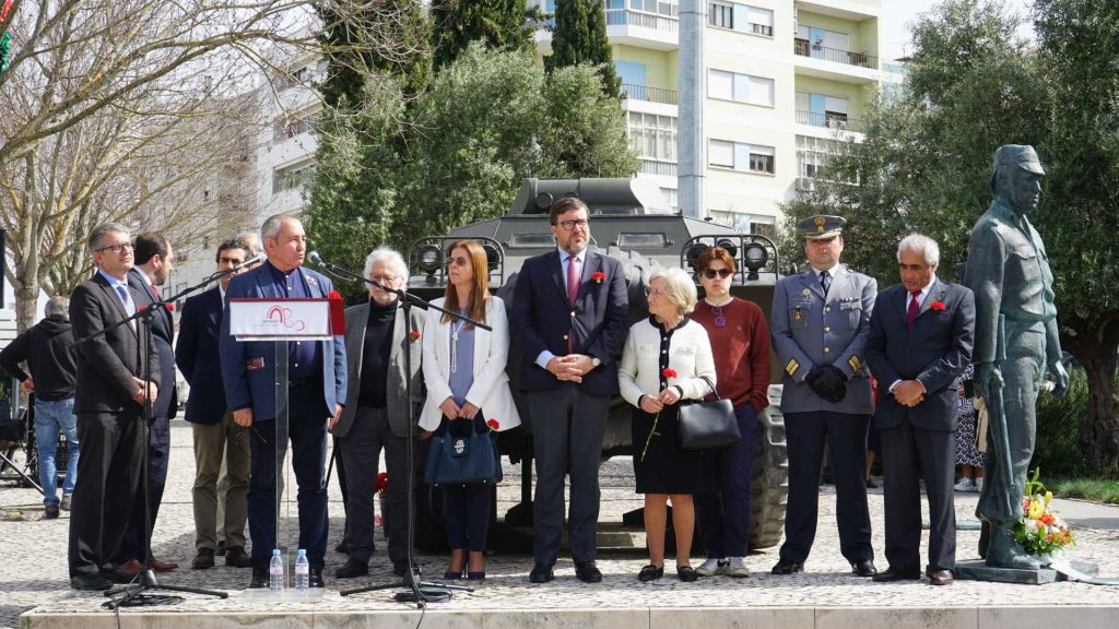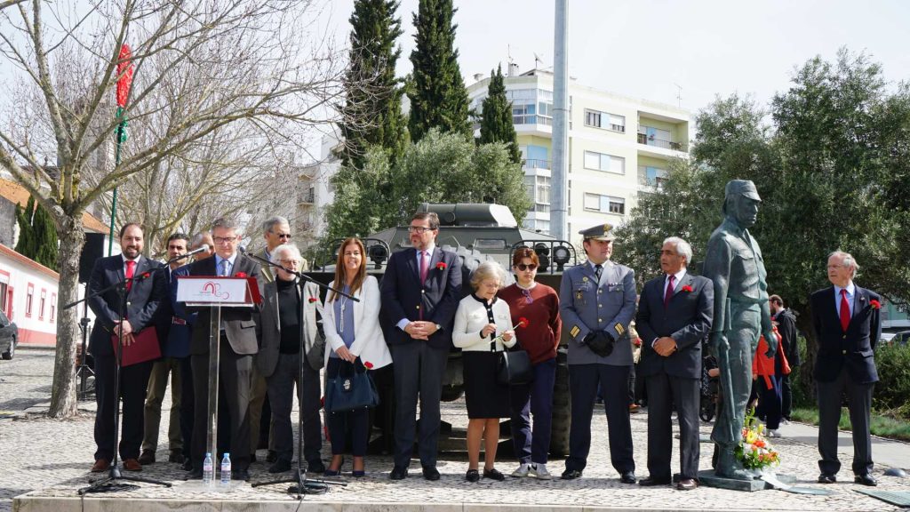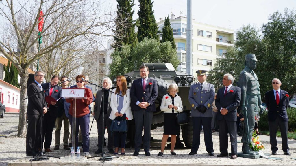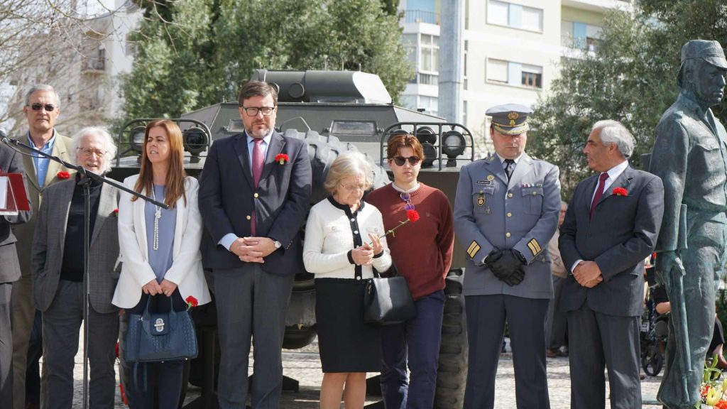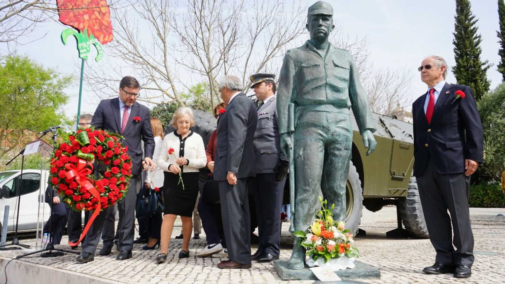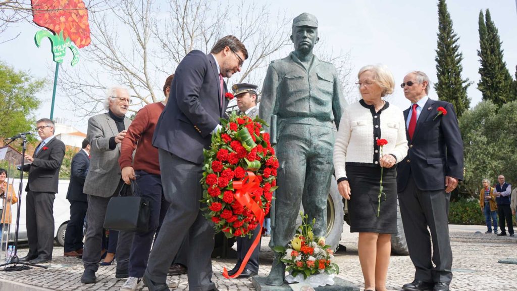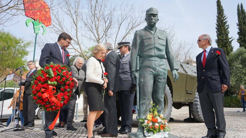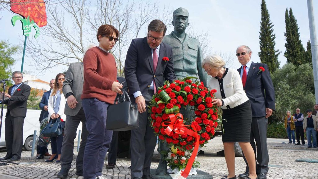 A homenagem teve lugar junto à estátua do Capitão de Abril, onde foram depositadas coroas de flores e realizados discursos em sua memória.