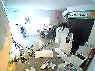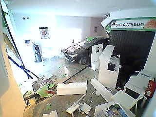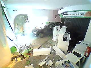 Segundo apurou Correio do Ribatejo no local, o incidente deu-se às 2h57. A viatura entrou de marcha-atrás e destruiu a montra e parte dos escritórios do estabelecimento onde se manteve em manobras durante cerca de quatro minutos. Quando saiu da loja, a viatura levou parte da montra por arrasto e colocou-se em fuga. O carro ainda chegou a atingir a parede da loja em frente.