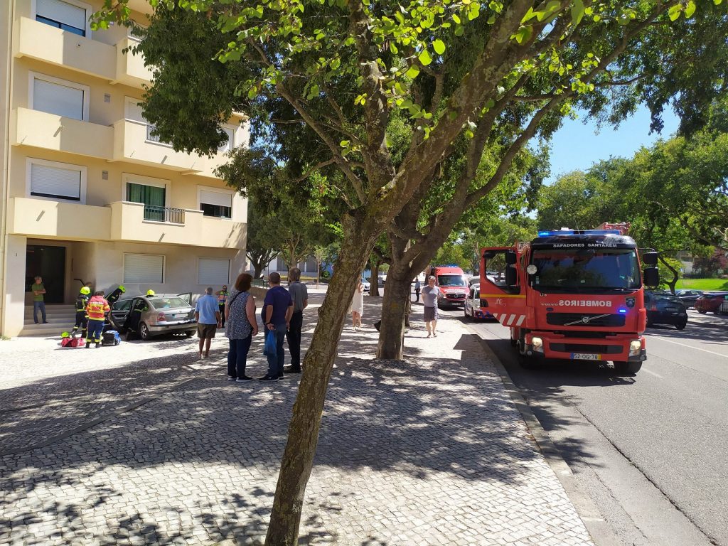 Um carro que seguia na Av. Grupo de Forcados Amadores de Santarém despistou-se, subiu o passeio e embateu num prédio, na manhã deste domingo, da 14 de Agosto.