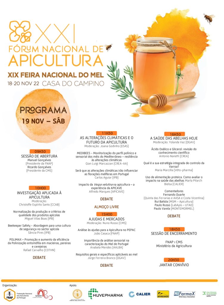 O Fórum Nacional de Apicultura decorre durante todo o dia de sábado, 19 de Novembro e vai juntar produtores, dirigentes associativos, técnicos e investigadores de todo o país para discutir temas como futuro da atividade apícola e da valorização e sustentabilidade dos territórios rurais de Portugal, alterações climáticas e o futuro da apicultura, ajudas e mercados e a saúde das abelhas hoje