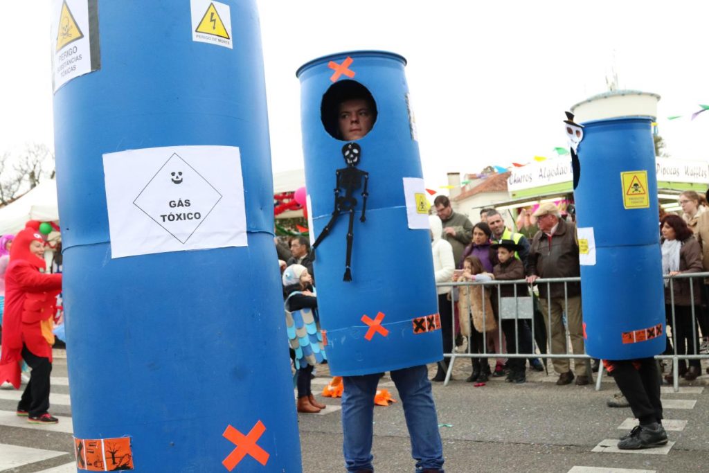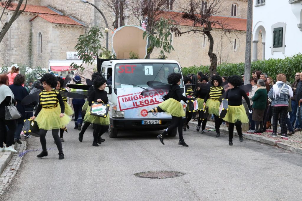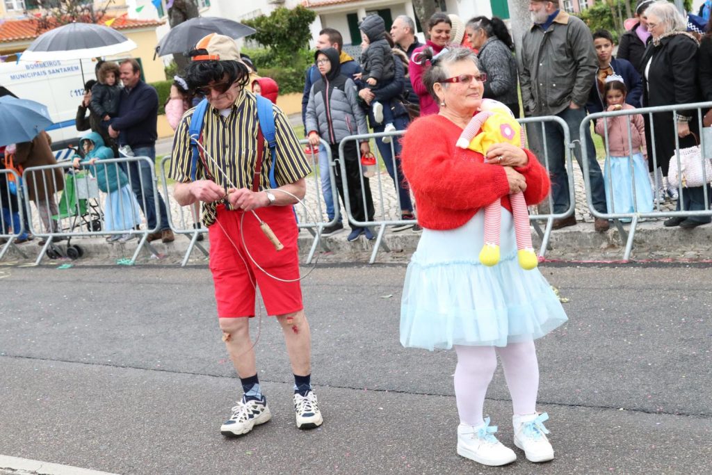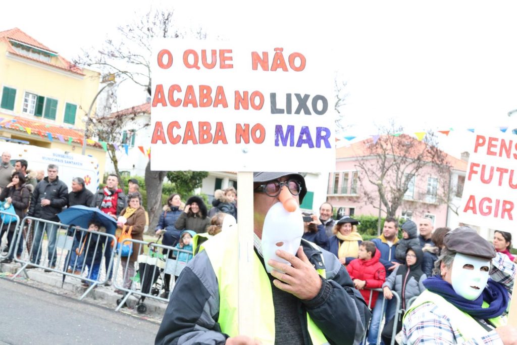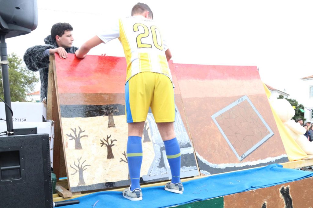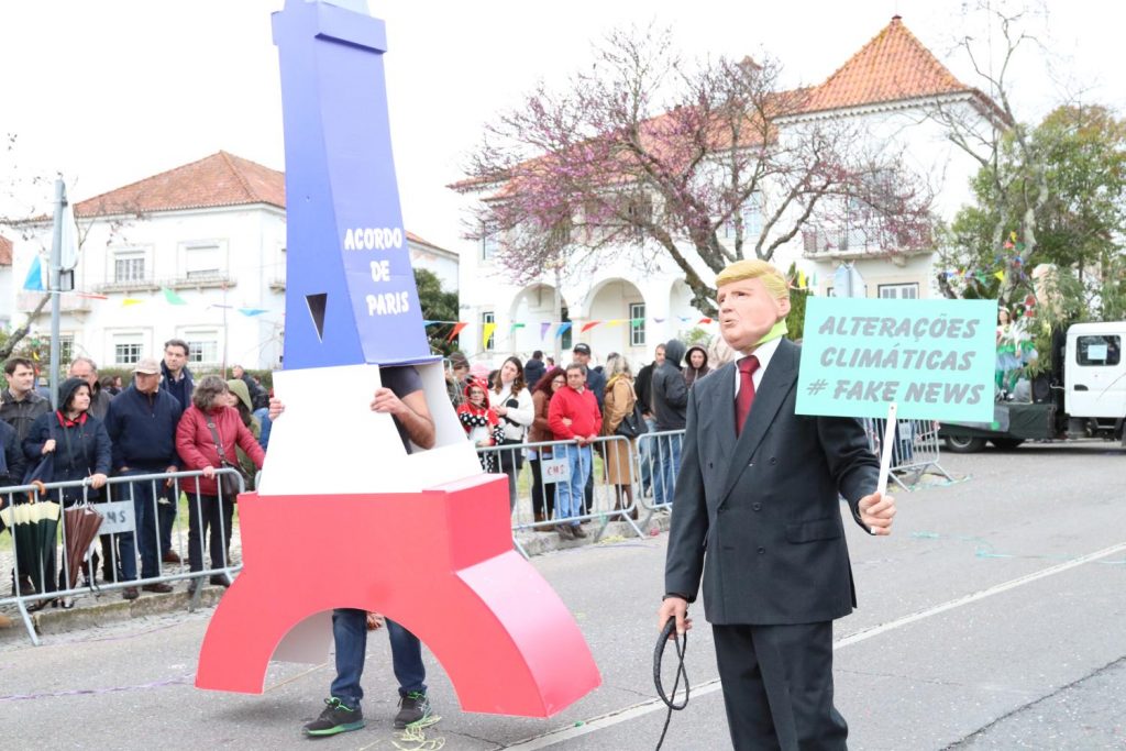 Ao longo do percurso, os foliões apresentaram os seus carros alegóricos, máscaras e coreografias, subordinados ao tema das “Alterações Climáticas”, perante centenas de pessoas que se deslocaram ao “sambódromo” scalabitano, sem medo da chuva e do vento.