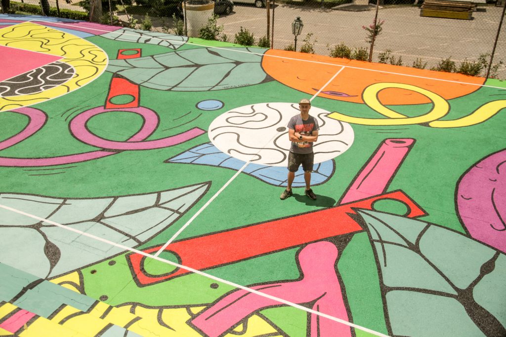 O artista urbano Vasco Costa é o responsável pelo projecto. “Procurei enquadrar e inspirar-me neste jardim e em tudo o que ele comporta, trazendo para o campo vários elementos que podemos encontrar no meio envolvente, conferindo-lhes uma explosão de cores e formas, que é muito a minha imagem de marca. Estou muito contente com o resultado final”, afirma.
