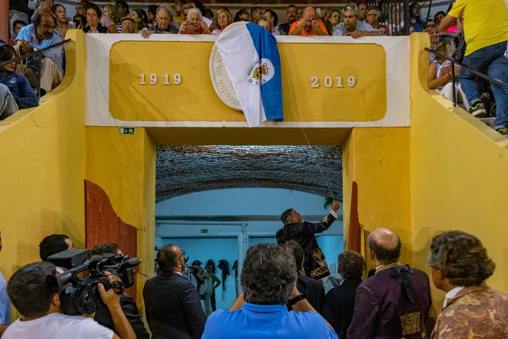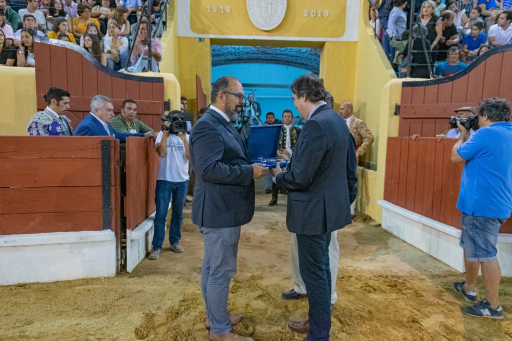 Antes do início da corrida, o Presidente da Câmara Municipal da Chamusca, Paulo Queimado, entregou uma salva de prata ao Provedor da Santa Casa da Misericórdia, Nuno Castelão, assinalando desta forma a homenagem do Município da Chamusca pelos 100 Anos da Praça. Nesta altura, foi também descerrada uma placa comemorativa da efeméride do centenário, que fica destacada no topo da porta de entrada dos cavaleiros em praça.