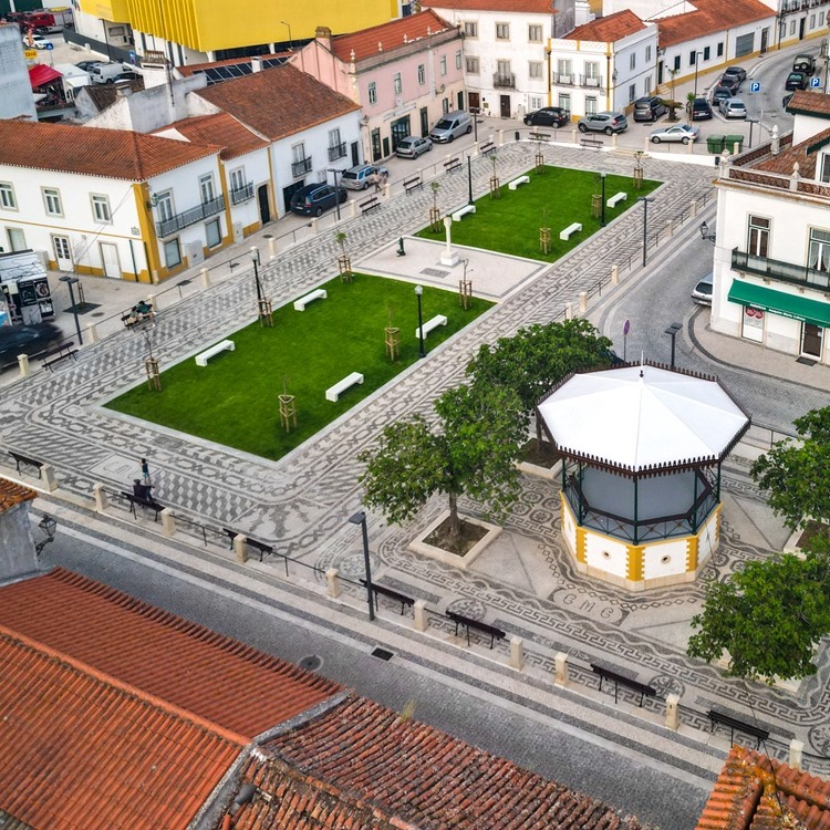 Entre os trabalhos realizados, destacam-se a reabilitação da calçada portuguesa, com padrões tradicionais, corrigindo deformações e reforçando a segurança; A substituição de árvores em mau estado e a plantação de jacarandás, que trarão sombra e cor nos próximos anos; A criação de uma zona de lazer central, acessível e pensada para os mais pequenos; A ampliação das zonas de descanso, com restauro dos bancos originais e novos equipamentos urbanos; A intervenção no coreto, devolvendo-lhe a função de palco de música e expressão cultural; A conservação do Padrão dos Descobrimentos, agora em destaque no seu lugar central — símbolo da alma ribatejana.