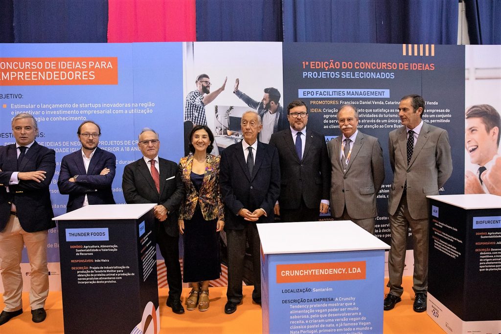 Domingos Chambel, presidente da direcção da NERSANT, Marcelo Rebelo de Sousa e a Ministra da Agricultura no stand da NERSANT, onde começou por referir o bom desempenho das exportações da região no último ano, acima da média nacional, apresentando de seguida o espaço emprego e formação. De seguida, os corredores da Nave B do CNEMA, foram percorridos por Marcelo e Maria do Céu Antunes, acompanhados pelo presidente do NERSANT, que foi apresentando as empresas participantes ao longo do percurso, com especial relevo para a indústria, comércio e serviços, que a comitiva teve a oportunidade de conhecer.