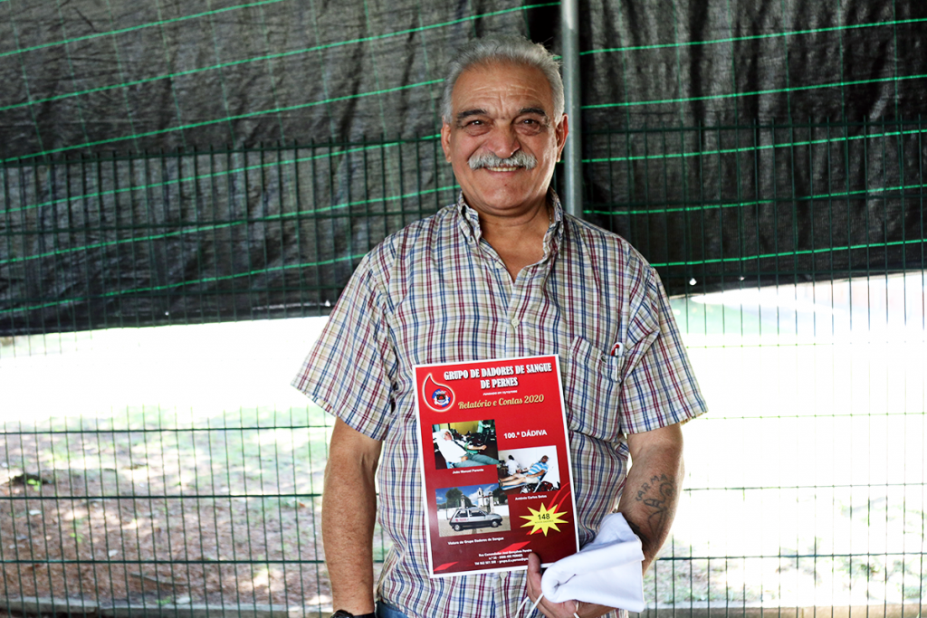 A iniciativa ficou ainda marcada pela homenagem a António Carregueira, dador que atingiu as 100 dádivas de sangue. O homem natural da Chamusca foi agraciado pelo Grupo de Dadores de Pernes com um diploma e medalha de honra alusiva à marca atingida e ainda uma gota de cristal oferecida pela FAS- Portugal (Federação das Associações de Dadores de Sangue).