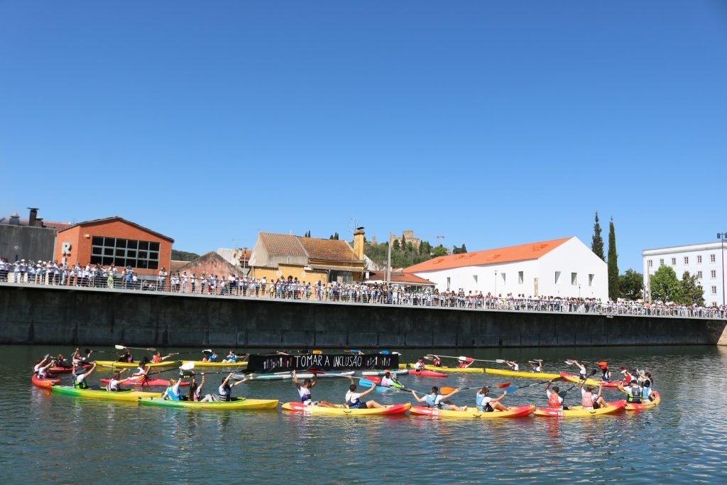 Tomar levou à letra a iniciativa Abraçar o Rio e, na manhã de quarta-feira, um elevado número de alunos criou um cordão humano em volta do espelho de água, na Ponte Nova e na Ponte do Flecheiro, bem como nas duas margens situadas entre elas, enquanto no leito canoístas colocavam, numa bela coreografia, uma faixa alusiva.