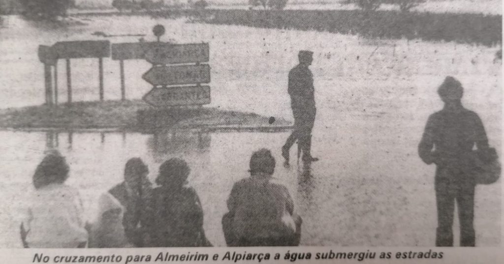 Após ter estado estacionária durante alguns dias e mantendo-se a situação que relatámos na semana passada, o aumento do volume das descargas nas barragens espanholas e nacionais (quer no Tejo quer no Zêzere) provocou, naturalmente, a subida das águas em todo o chamado Vale do Tejo, inundando por completo os campos marginais e submergindo estradas com o consequente isolamento de muitas povoações, como é habitual nestas situações, ainda que tal não se verificasse desde 1979. Assim, mais uma vez, o Ribatejo na zona de Santarém, ficou dividido em duas áreas, já que a circulação rodoviária esteve interrompida entre Santarém e Almeirim. Também o Dique dos Vinte foi galgado, resultando daí que o transito estivesse cortado entre a Chamusca e a Golegã.