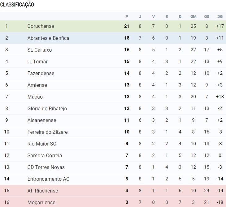 A equipa de Coruche recebeu e venceu por 3-2 o Ferreira do Zêzere, com golos de Tiago Capeto, Lorran Jesus e Bruno Conduto. Para os visitantes marcaram Leonardo e Ricardo Gerardo.