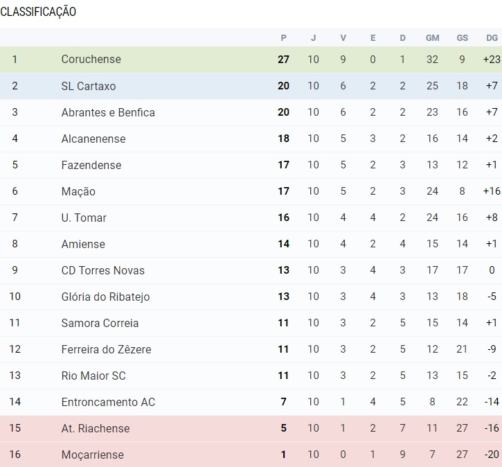 O Coruchense recebeu e venceu por 5-1 a equipa do Abrantes e Benfica que até hoje era segunda classificada na tabela. Fábio Nogueira, Bruno Conduto, Kevin Roxenborg, Bernardo Oliveira e um autogolo de Diogo Barrocas deram os golos da equipa da casa. João Marchão marcou o golo solitário dos visitantes.