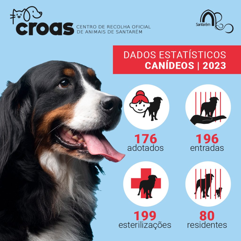 O Centro de Recolha Oficial de Animais de Santarém (CROAS), durante o ano de 2023, registou a entrada de 196 canídeos através de acções de captura, recepção e recolha de animais abandonados ou errantes, tendo sido adotados 176 e devolvidos aos seus detentores 22. A associação terminou o ano de 2023 com 80 canídeos residentes.
