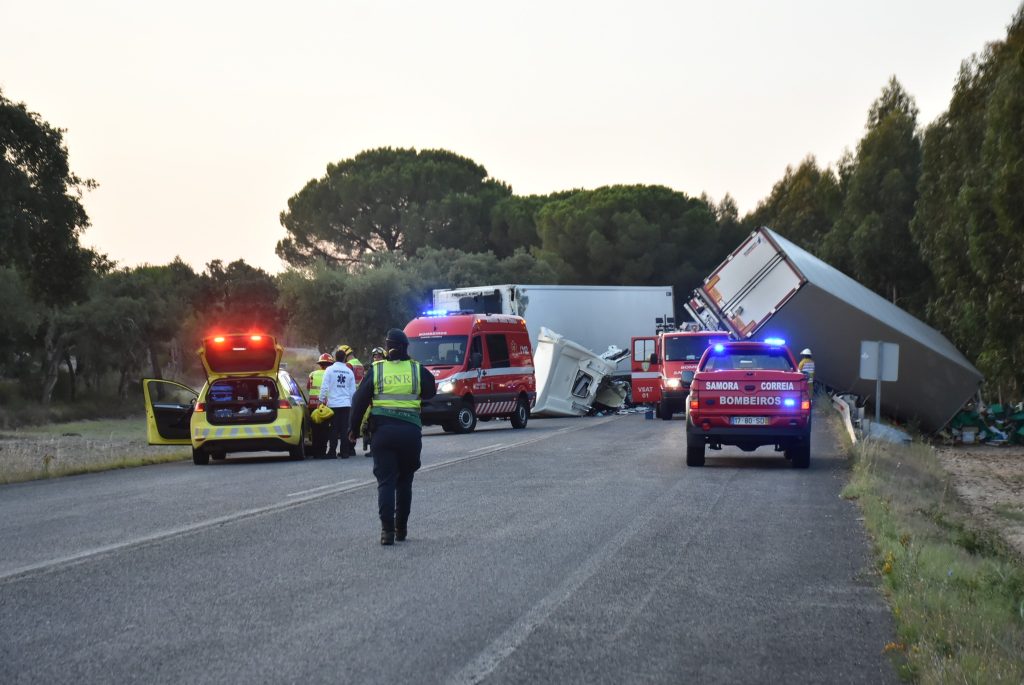 Duas pessoas morreram e três ficaram feridas numa colisão que envolveu três veículos pesados e um ligeiro na Estrada Nacional 10 em Samora Correia, Benavente, que pelas 09:00 ainda estava cortada ao trânsito, segundo a proteção civil.