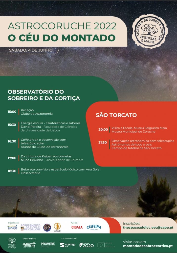 O Observatório do Sobreiro e da Cortiça, em Coruche, recebe, sábado, o encontro de astronomia AstroCoruche, este ano sob o tema “O Céu do Montado”, o qual poderá ser observado à noite em São Torcato.