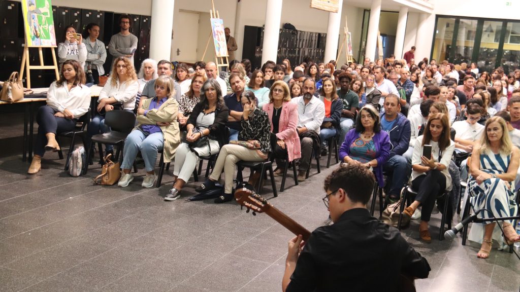 João Teixeira Leite, Presidente da Câmara Municipal de Santarém (CMS), Maria Adélia Esteves, Diretora do Agrupamento de Escolas Sá da Bandeira (AESB), Maria José Cordeiro, Presidente Conselho Pedagógico do AESB, e Helena Eloy, Presidente da Associação de Pais e Encarregados de Educação da ESSB, integraram o painel de honra da cerimónia que teve lotação esgotada.