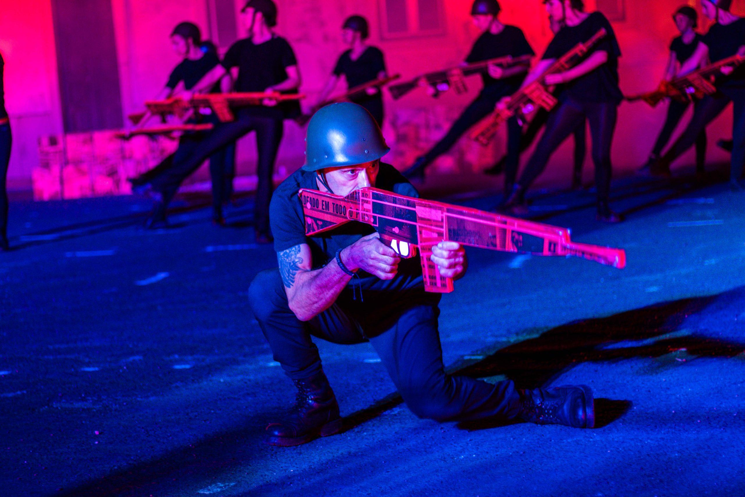 Durante o espetáculo, os espectadores puderam ver retratadas cenas do tempo da ditadura, a censura, a perseguição política, a tortura e as prisões arbitrárias dos opositores, a guerra colonial e a morte nos campos de batalha, a organização do Movimento das Forças Armadas e a partida da coluna militar da Escola Prática de Cavalaria rumo a Lisboa para o golpe que depôs o governo ditador no dia 25 de Abril de 1974.