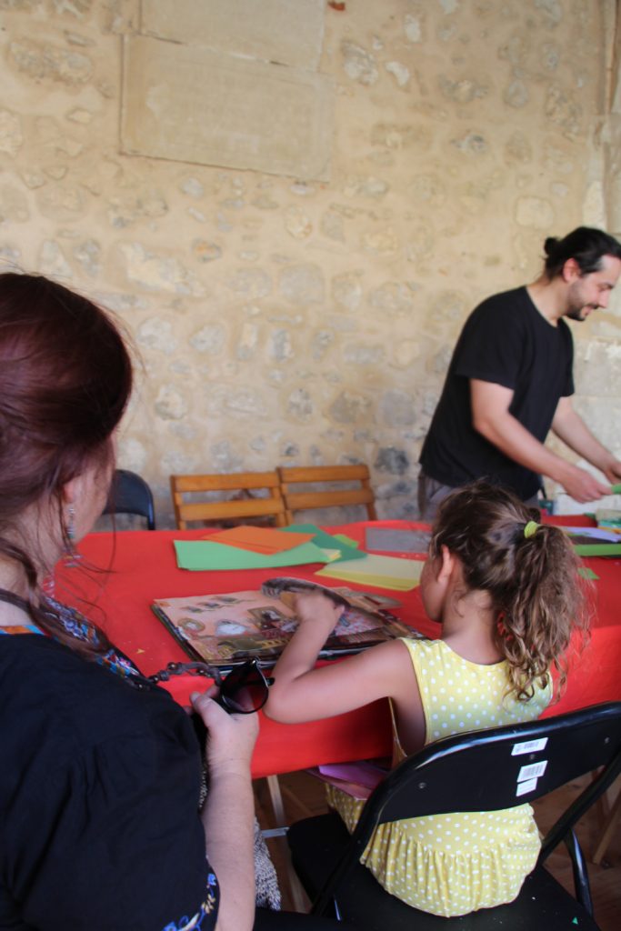 Foram feitas várias oficinas. Oficinas de Stencil, por João Domingos, com uma adesão massiva de pequenos e grandes curiosos; de Costura, por Rita Correia, que suscitou grande interesse das famílias; de Livros Pop Up, por André Pimenta, que reuniu à volta da mesa muitas famílias.