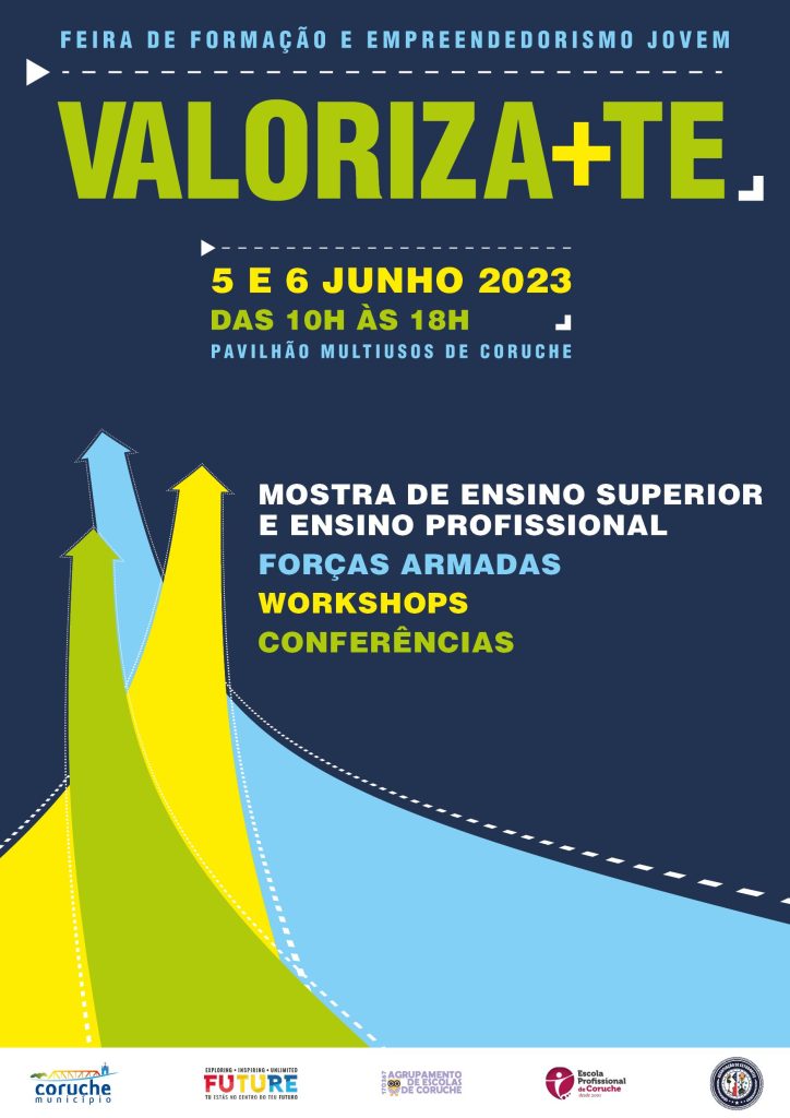 O Pavilhão Multiusos de Coruche vai receber nos dias 5 e 6 de Junho, entre as 10h00 e as 18h00, a “Feira de Formação e Empreendedorismo Jovem: Valoriza-te”. Uma mostra do ensino superior e do ensino profissional, bem como expositores e participantes de diversas entidades dos setores da juventude e das Forças Armadas.