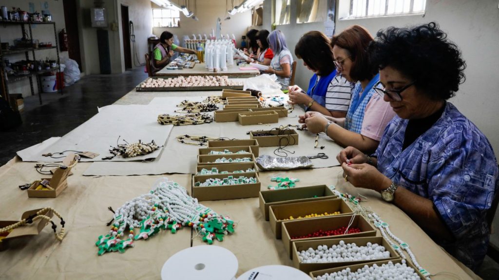 “Não vejo pessoas interessadas que venham para aqui fazer este serviço. As pessoas, hoje, querem outros trabalhos, mais qualificados, melhores”, sublinha esta operária que, além de terços, também trabalha na pintura das imagens.