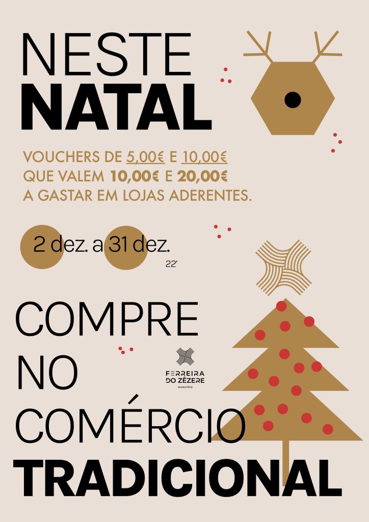 A Campanha “Neste Natal compre no comércio tradicional” está em vigor de 2 a 31 de Dezembro. Para esse efeito estarão envolvidos os estabelecimentos comerciais do Concelho de Ferreira do Zêzere que adiram à iniciativa e que detenham a Classificação das Atividades Económicas (CAE) 47 – Comércio a retalho, com exceção de hipermercados; de bebidas ou tabacos, comércio a retalho de combustível para veículos a motor e comércio a retalho de combustíveis para uso doméstico.
