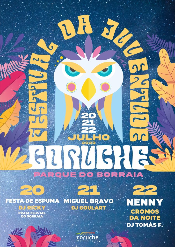 O Festival da Juventude vai regressar a Coruche, de 20 a 22 de Julho. O evento decorre na Praia Fluvial do Sorraia e vai contar com uma festa de espuma e diversos concertos de artistas como Miguel Bravo, Nenny, Cromos da Noite e os DJ Goulart, DJ Ricky e DJ Tomás F.