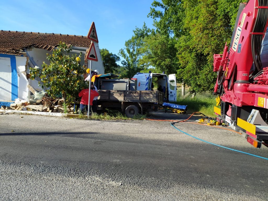 Um ferido grave é o resultado de um despiste de uma viatura ligeira de mercadorias contra uma casa devoluta na sexta-feira, 22 de Maio, na estrada Estrada Municipal 574, entre Semideiro e Chouto, no concelho da Chamusca.