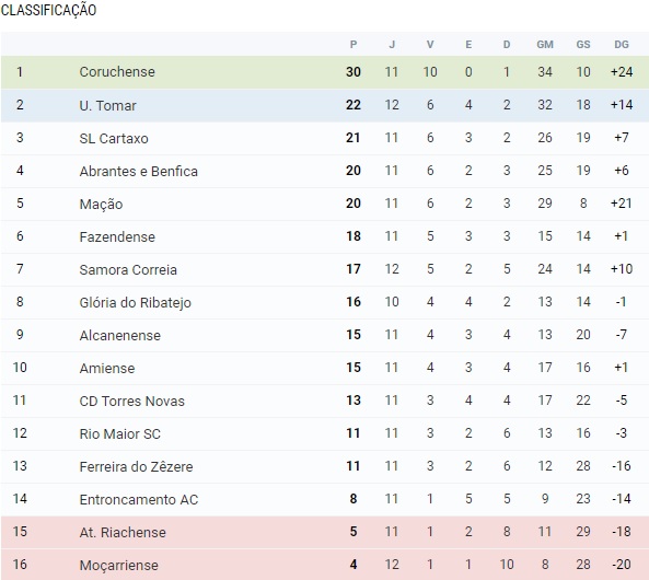 Na 12ª jornada da competição, o Coruchense que seguem na primeira posição da tabela deslocou-se ao reduto do Alcanenense para vencer por 1-2. A vitória foi garantida com o bis de Bruno Conduto, com Pedro Romero a marcar o golo da casa.