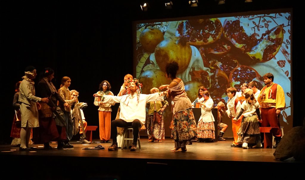 A adaptação do texto, encenação, concessão estética do espectáculo, figurinos é de Fernanda Narciso, assistida por Carlos Doles e Ana Bela Ferreira; Desenho e operação de Luz, Chico Cercas; Operação de Som, João Carvalho; projecção de imagens, Vítor Murta; produção executiva, São Marecos e António Júlio; execução de figurinos, São Marecos; construção de adereços, Margarida Gabriel; construção de cabeçudos, EnXamula; caracterização, António Júlio, direccão técnica, Fátima Carniça; técnica de cena, Beatriz Alexandre; técnico de palco, Isabel Machado; efeitos de fumo e montagens, José Carlos Jordão. Actores: Ana Pedrosa, Ana Bela Ferreira, António Júlio, Beatriz Batista, Carlos Doles, Fátima Carniça, Francisco Selqueira, Joana Raimundo, Leonor Domingos, Letizia Ribeiro, João Inglês, Madalena Simões, Maria Cardoso, Margarida Gil, Mariana Gil, Marília Picoto, Margarida Correia, Martim Silva, Nuno Amaral, Orlanda Ramos, Sara Fragoso, Sebastião Alexandre e Tomás Martins.