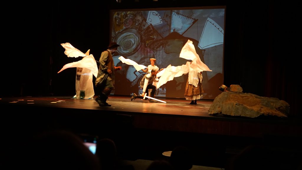 A Gala encerrou com a estreia da peça ‘Antes de Fugir’, da autoria de Fernanda Narciso, numa adaptação da obra original de Miguel Cervantes. Os dois heróis de Cervantes são simplesmente as personagens literárias mais amplas de todo o Cânone Ocidental. Dom Quixote e Sancho Pança representam valores distintos, embora sejam participantes do mesmo mundo. A história é-nos apresentada sob a forma de novela realista: ao regressar ao seu povoado, Dom Quixote percebe, que não é um herói, mas que há mulheres e homens que antes de fugirem, agem, pensam por si, esgotam as hipóteses, tentam tudo por um abraço.