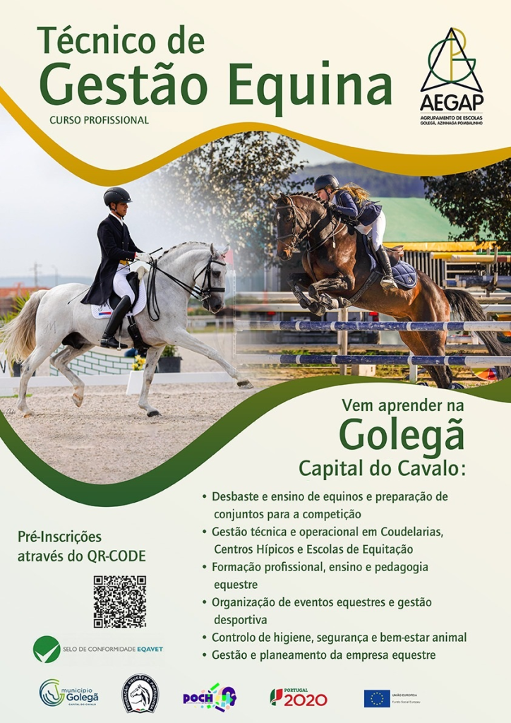 A Câmara Municipal da Golegã e o Agrupamento de Escolas da Golegã, Azinhaga e Pombalinho, em articulação com a Federação Equestre Portuguesa, lançaram as pré-inscrições para o Curso de Técnico de Gestão Equina para o ano letivo 2023/2024, dirigido a todos os alunos que tenham concluído o 9.º ano de escolaridade, interessados em ingressar neste Curso Profissional ligado à área equestre