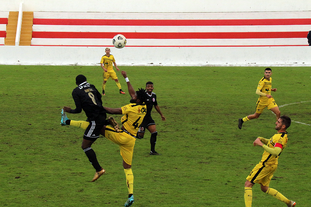 Logo no reatamento (48′) Vasco Lopes é travado por Bruno Carvalho, ficando um cartão amarelo por mostrar ao médio do Loures (ex-UDS).