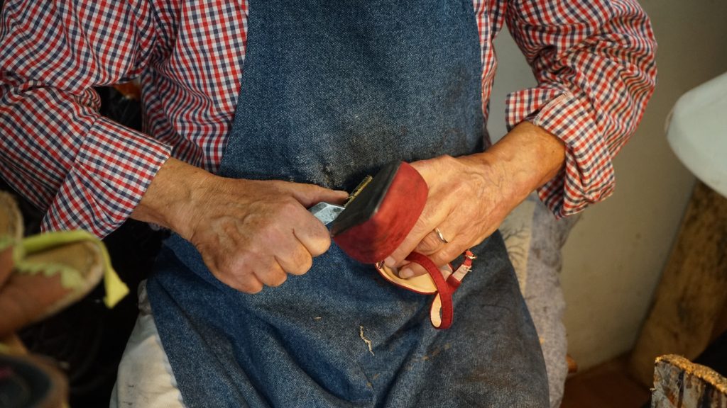 Comecei a trabalhar aos 15 anos de idade. Isto não era para ser o meu ofício. Naquele tempo, há setenta anos, havia muitas oficinas de carros e a minha ideia era ser ‘bate-chapas’. As miúdas queriam era malta das oficinas, mas depois comecei a aprender a profissão de sapateiro muito rápido. O meu pai dizia-me: “Quando souberes trabalhar em calçado, vais para aquilo que tu queres”. Mas eu depois comecei a gostar disto. Já não fui para ‘bate-chapas’. Continuei nesta vida. Ao fim de seis meses estava a fazer um par de sapatos. Os meus colegas diziam: “Onde é que compraste os sapatos?” e eu respondia: “Fui eu que os fiz”, mas ninguém acreditava. No entanto, depois começaram a dizer para eu descalçar os sapatos e viram que não eram sapatos de fábrica e passaram a acreditar. E aqui estou eu, com 88 anos, ainda a fazer qualquer coisa.