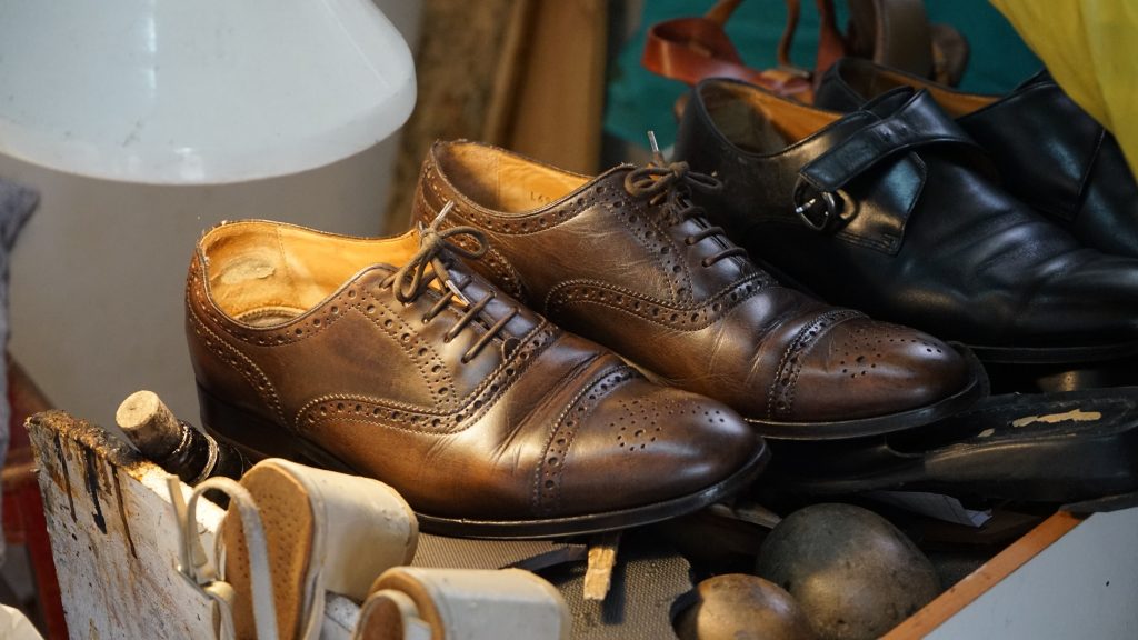Tenho aqui um par de sapatilhas. Olhe aqui, tudo estragado. O que é que eu vou fazer a isto? Tudo estragado? As sapatilhas são à base de cola. Quando estão descoladas, colam-se. Aparece-me aqui calçado dos ‘chineses’ e isso não presta para nada, o calçado não vale para nada. Muita gente compra, estraga-se e deita fora. Certo dia, fui dar uma volta pela cidade e encontrei bastante calçado nos contentores que é um disparate. Tudo estragado. As pessoas compram e deitam fora, não mandam arranjar. Aquilo custa dez euros ou quinze e estão sempre a estrear calçado novo.