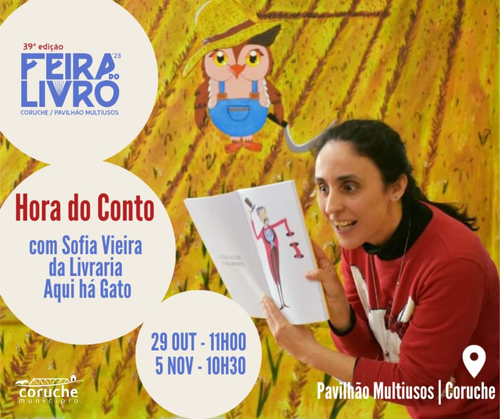Sofia Vieira, mentora da associação e livraria Aqui Há Gato, promove a 29 de Outubro, pelas 11 horas, e 5 de Novembro, às 10h30, duas sessões da Hora do Conto com um punhado de histórias contadas com emoção; histórias que Sofia, licenciada em Psicologia Educacional e formada em Educação pela Arte e em Arte Terapia, escolhe por serem as mais divertidas, as que fazem pensar, as que fazem sentir… as que fazem crescer lendo!
