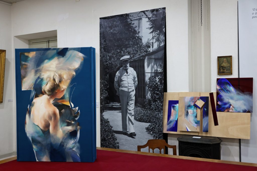 A mostra combina quadros e desenhos distribuídos pelo espaço da Casa-Museu, colocados entre antigos livros e estantes.